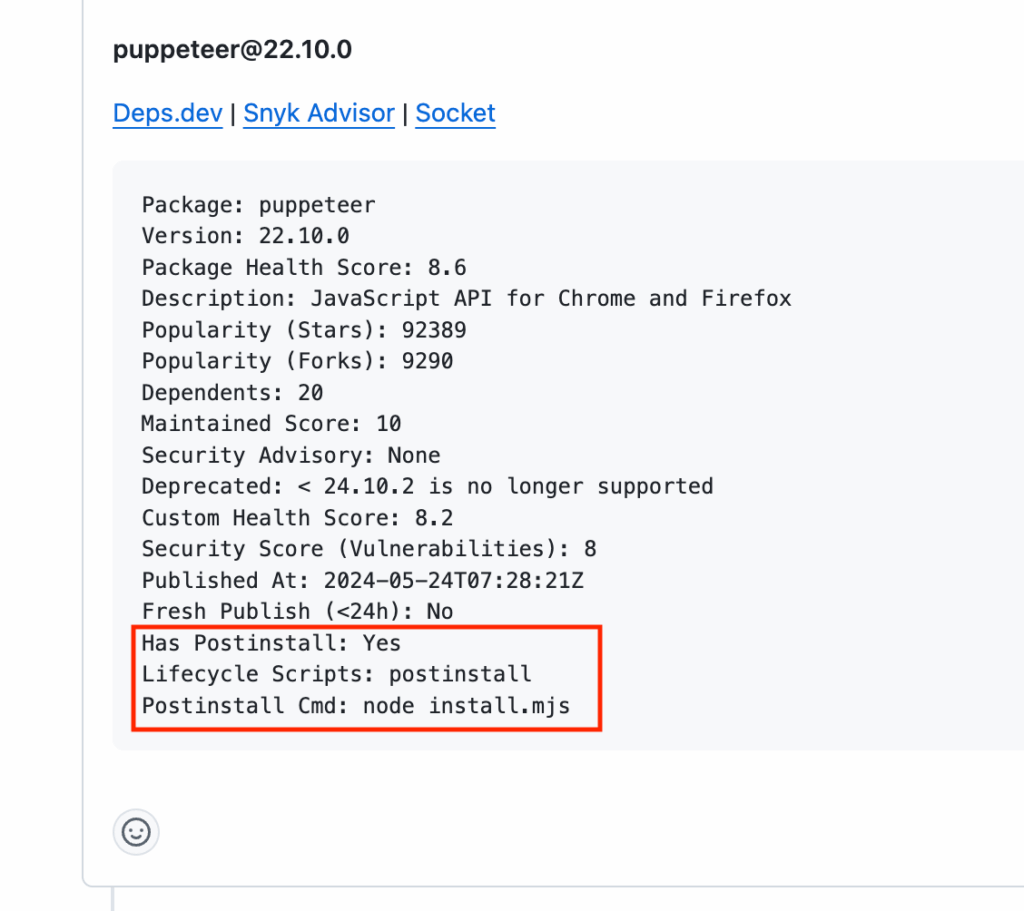 python heisenberg_health_check.py -mgmt npm -pkg puppeteer -v 22.10.0