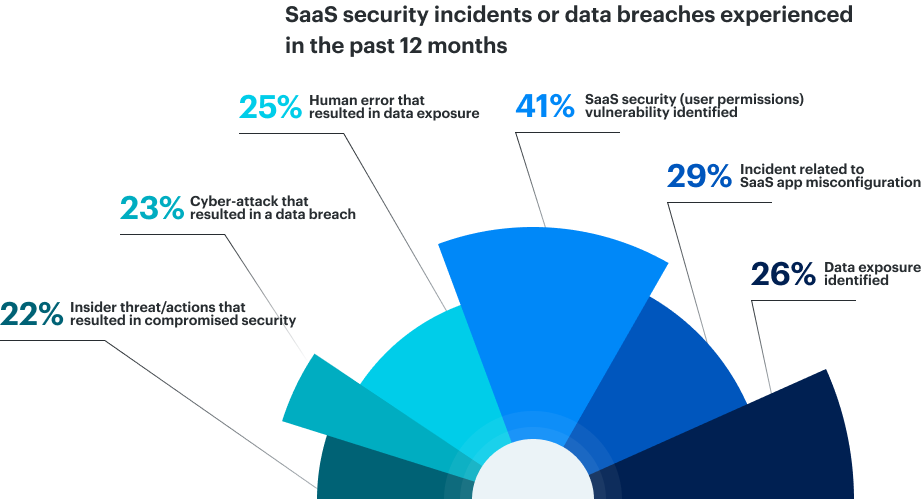 - 75% of organizations suffered a SaaS incident or breach in the past 12 months