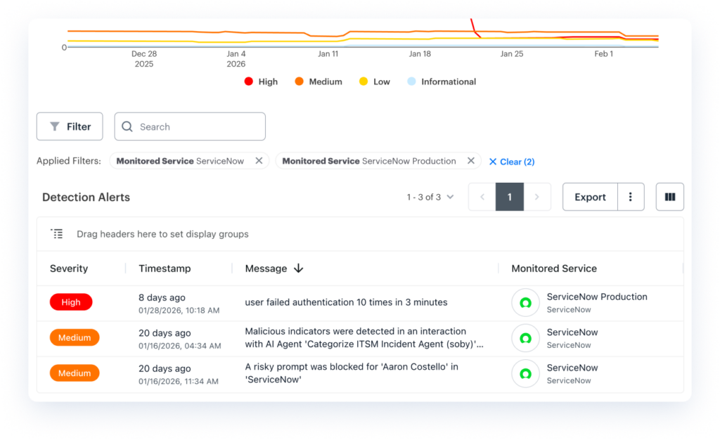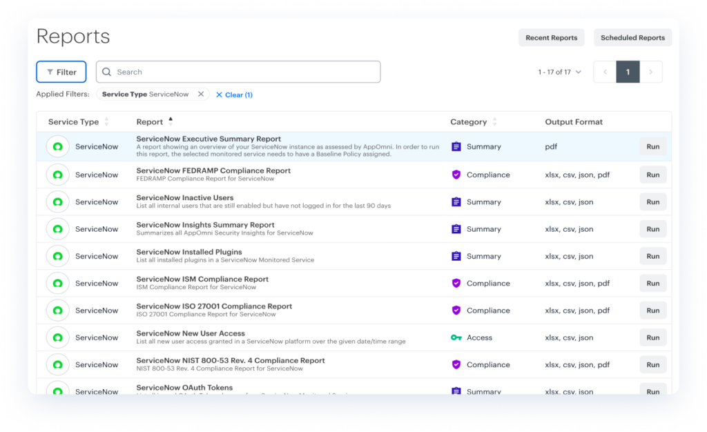 AppOmni combines deep SaaS and AI security posture management expertise with ServiceNow configuration and administrative knowledge to help your ServiceNow developer and administration teams stay ahead of cyber attackers. We help your ServiceNow teams manage security posture, implement configuration best practices, and monitor threats to your SaaS and AI integrations.
