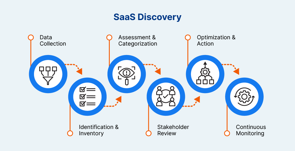 There is a general method that most organizations follow for SaaS discovery, regardless of the tools used. It typically involves several key steps to uncover and manage all the SaaS applications in use: